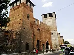 Castelvecchio, scaligerský hrad s cihlovým mostem přes řeku Adiži ze 14. století, se rozkládá v západní části města. Gotický most s oboustranným cimbuřím a jedním velikým obloukem byl na jaře 1945 vyhozen do povětří ustupujícím wehrmachtem, ale po válce byl pečlivě znovu postaven ze součástí, vyzdvižených ze dna řeky. V hradu se nachází jedna z nejlepších veronských galerií v pozoruhodné moderní instalaci.