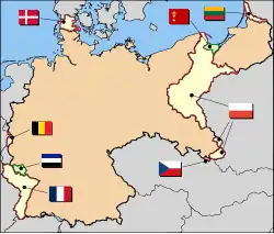 - Severní Šlesvicko (dánsky Nordslesvig, německy Nordschleswig) bylo po šlesvických plebiscitech předáno Dánsku (3 228 km² nebo 3 938 km²).