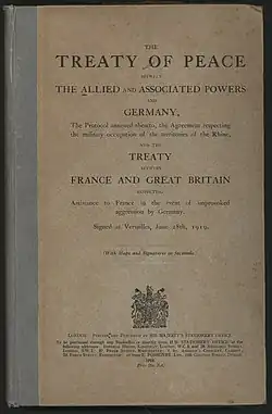 - ↑ Treaty of Versailles | Definition, Summary, Terms, & Facts. Encyclopedia Britannica [online]. [cit. 2020-11-15]. Dostupné online. (anglicky)