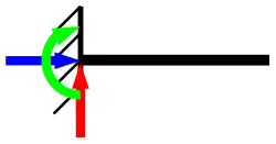 Při volbě kladného směru momentové reakce ve směru hodinových ručiček ve vetknutí pak působí ohybový moment (záporný), který způsobuje tah v horních vláknech a tlak ve vláknech spodních.