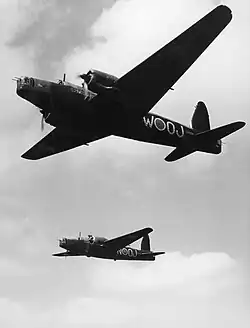 Letouny Wellington, nazývané britskými letci „Wimpey“ či „Wimpy“[p 1] a českými letci „Velouš“, tvořily v době vypuknutí druhé světové války výzbroj deseti perutí 3. skupiny bombardovacího velitelství RAF, z nichž dvě ale nebyly ještě plně bojeschopné a dvě sloužily pro operační výcvik osádek.[4] Wellingtony byly, spolu s dalšími britskými bombardéry, zprvu nasazovány především ke shazování letáků nad nacistickým Německem a útokům proti lodím Kriegsmarine. Již 4. září 1939 14 Wellingtonů 9. a 149. peruti podniklo nálet na bitevní křižníky Scharnhorst a Gneisenau kotvící u Brunsbüttelu, což byl v pořadí druhý nálet uskutečněný britskými vzdušnými silami během války.[5] Pokusy o nálety za denního světla na podzim a v zimě 1939 vedly k těžkým ztrátám britských bombardovacích jednotek,[5] a proto se jádro jejich činnosti od května roku 1940 přeneslo do nočních hodin. Po zahájení německé ofenzívy na západní frontě začaly Wellingtony provádět noční bombardovací útoky na pozemní cíle v Německu, zejména komunikační uzly a strategicky důležité průmyslové podniky. Poté, co nacistická Luftwaffe během bitvy o Británii začala bombardovat Londýn, začaly Wellingtony RAF od konce srpna podnikat odvetné nálety na Berlín.[6] Od září 1940 se s letouny typu Wellington do náletů na cíle v okupované Evropě i v Německu zapojila i 311. československá bombardovací peruť RAF.[6] V listopadu 1940 byla zformována také první peruť námořních hlídkových Wellingtonů v rámci velitelství pobřežního letectva. Wellingtony představovaly jádro těžkých nočních bombardovacích sil RAF i v letech 1941-1942, ale v průběhu roku 1943 v nich začaly být ve zvýšené míře nahrazovány modernějšími čtyřmotorovými stroji s větší nosností pum, a přecházely právě k úkolům námořního průzkumu a protiponorkového boje v bitvě o Atlantik, výcviku osádek a částečně i do transportní role, v nichž byly nasazovány až do konce války, a to nejen na západní frontě, ale i ve Středomoří a na Dálném východě.