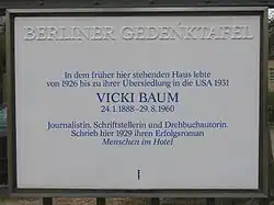 - ↑ MUSEUM, Stiftung Deutsches Historisches. Vicki Baum: Biographie. www.dhm.de [online]. [cit. 2017-07-20]. Dostupné online. (německy)