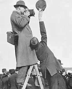 Známá je fotografie, jak stojí na štaflích společně se svým otcem Axelem, kterému stíní objektiv kloboukem místo sluneční clony.