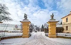 ![]() Vidimský zámek od západu s věží a částí parku | |