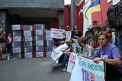 - Akce proti cenzuře a na podporu svobody projevu, zejména proti odebrání vysílacích frekvenci televizním kanálům „5“, „TVi“[18], „STB“, a také akce pro uctění památky novinářů zavražděných v nezávislé Ukrajině.