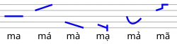 Protože vietnamština je tónový jazyk, má každá samohláska pět tónových variant: