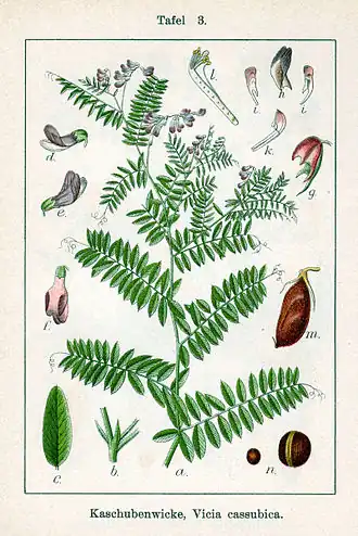 - ↑ a b c MRÁZEK, Tomáš. BOTANY.cz: Vikev kašubská [online]. O. s. Přírodovědná společnost, BOTANY.cz, rev. 11.09.2015 [cit. 2016-04-30]. Dostupné online.