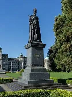 Socha královny Viktorie před budovou parlamentu Britské Kolumbie v hlavním městě Victoria