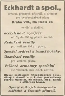 - ↑ a b Inzerát Chotěbořských kovodělných závodů. Národní obroda. 1947-07-31, s. 6. Dostupné online po registraci.