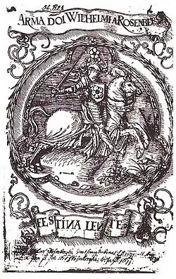 Již během svých studií v Pasově si Vilém z Rožmberka zvolil heslo Festina lente (spěchej pomalu), které pak užíval celý život.[11][pozn. 2]