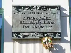 „V tomto domku žili a pracovali Antal Stašek 1913-1931, Helena Malířová 1920-1935, Ivan Olbracht 1920-1952“