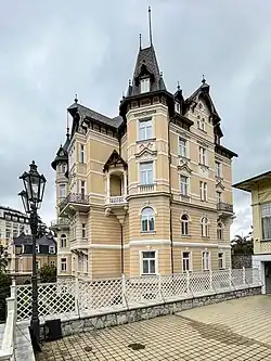 - ↑ a b ZEMAN, Lubomír. Karlovarský Westend. Karlovy Vary: Karlovarské muzeum v Karlových Varech v edici Dějiny a příroda Karlovarska, 1998. 276 s. Kapitola Vývoj vilové čtvrti Westend, s. 47–49, 198–201.