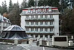 - ↑ a b c ZEMAN, Lubomír. Průvodce architekturou Karlových Varů. 1. vyd. Praha: Národní památkový ústav, 2012. 511 s. ISBN 978-80-87104-63-7. Kapitola Lázeňské centrum – Westend, s. 304.