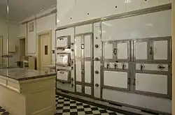 Na vysoké úrovni dobových možností byly i další části technického zázemí – kuchyně a prádelna, které se zachovaly v autentickém stavu. Kuchyni doplňovaly sklady speciálního nádobí, potravin, vína a dvě chladicí místnosti. Uprostřed kuchyně se zachoval velký stůl pro přípravu jídla s celistvou mramorovou deskou, velký plynový sporák a zařízení s několika troubami a grilem, které tvoří jednu stěnu.