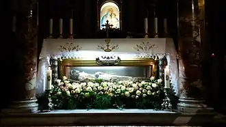 Jeho tělo bylo v roce 1906 a 1950 exhumováno a shledáno neporušené, což je v katolické církvi tradičním znakem svatosti. Proto bylo v novém oděvu vloženo do proskleného sarkofágu v menze hlavního (mariánského) oltáře v kostele San Salvatore in Onda v Římě.