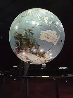 Pozemský glóbus – představuje stav známých geografických poznatků francouzských průzkumů především v oblasti Severní Ameriky.