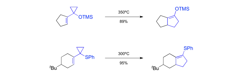 Silyloxyvinylcyklopropany[29] a sulfinylvinylcyklopropany[30] lze použít na přípravu anelovaných cyklopentenů. I když tyto reakce stále vyžadují teploty nad 300 °C, tak mohou být užitečnými meziprodukty díky zavedení cyklopentenových skupin na již existující kruhy.