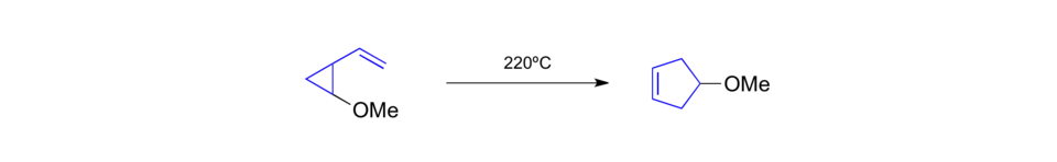 Methoxyované vinylcyklopropany reagují výrazně rychleji, což umožňuje provádět reakce při 220 °C.[28]
