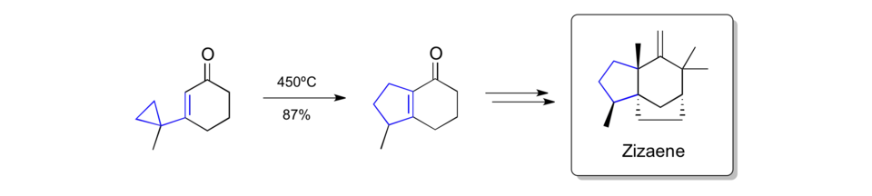Vinylcyklopropanový přesmyk je také součástí Piersovy syntéza zizaenu, z roku 1979.[39]
