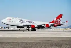 Přistávající Boeing 747-400 Virgin Atlantic na Letišti v Las Vegas v roce 2007