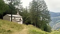 Lesní kaple Navštívení Panny Marie, darovaná obci v roce 1652, s varhanami z roku 1619, je poutním místem a byla poškozena zemětřeseními v letech 1756 a 1855. Ke kapli vede cesta s deseti staničními kaplemi ze 17. století, která byla obnovena v roce 1965.[2]