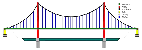 Obrázky, zvuky či videa k tématu visutý most na Wikimedia Commons - Suspension bridge (anglicky)