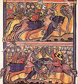 - ↑ Z této kapitoly pochází jediná historická zmínka o rytíři Rolandovi v souvislosti s jeho smrtí v bitvě s Basky v horské soutěsce Roncevaux v Pyrenejích.