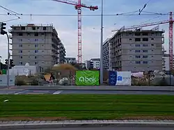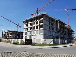 ![]() Pozemky projektu po zboření továrních hal a po začátku výstavby objektu E | |