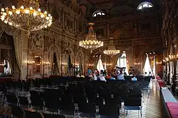 Budova ve tvaru písmene „L“ je vyzdobena renomovanými pařížskými umělci tehdejší doby, Humanité-René Philastrem a Charlesem-Antoinem Cambonem. Původně měl sál kapacitu asi 1800 míst, ta však byla při rekonstrukcích zredukována na 965 ovšem se zásadně lepším výhledem na jeviště. Lustr s více než 80 žárovkami měří 3 × 4,5 m. Kupole je vymalována ve stylu trompe-l’œil.