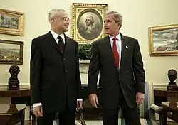 Po nástupu do funkce zbavil vlivu okruh osob kolem bývalého poradce Miloše Zemana Miroslava Šloufa, který byl zejména ze strany USA vnímán jako bezpečnostní riziko.[11] Proti vůli části vlastní strany a s podporou ODS prosadil vojenskou účast české armády v tehdy obsazeném Iráku.[12]