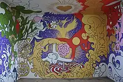 Realizoval 9 velkých nástěnných maleb podle vlastních návrhů, malovaných naživo před publikem s hudbou jako performance (mj. největší nástěnná malba v ČR v podchodu vlakového nádraží v Tišnově (plocha 600m2 - 2015), na FF MU Brno, Orlí 1 Brno, Galerie Kritiků Praha, Vila Settemerli Florencie, aj.).