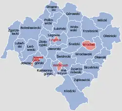 Dolnoslezské vojvodství se člení na 4 městské a 26 zemských okresů (polsky Powiat).