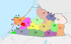 Kaliningradská oblast se člení na 10 městských okruhů a 12 rajónů.