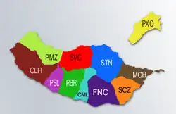 Madeira se člení na jedenáct samosprávných celků. Všechny leží na ostrově Madeira, krom Porto Santo, který je shodný se stejnojmenným ostrovem.