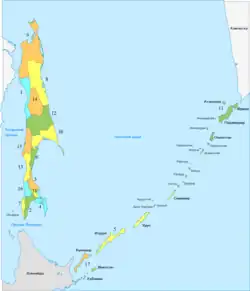 Sachalinská oblast se od roku 2011 člení na 17 rajónů, jedno město oblastního významu (Južno-Sachalinsk), jedno město okresního významu (Uglegorsk), jednu vesnici městského typu Vachrušev a jeden vesnický okruh (Bošnjakovský).