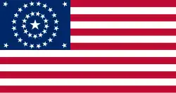 První americká vlajka (Grand Union Flag)První americká vlajka s třinácti pruhy (Grand Union Flag) z roku 1775 se stala národní vlajkou USA již roku 1776, tehdy to ale byla vlajka patřící Britské Východoindické společnosti (Britská Východoindická společnost). V jejím kantonu byl ještě britský Union Jack, který vyjadřoval skutečnost, že povstalci chtěli zůstat loajální k britskému králi. Dne 14. června 1777 rozhodl Kongres USA, že v kantonu budou hvězdy, které společně s pruhy budou symbolizovat počet členů federace. Ovšem po vstupu Vermontu a Kentucky do federace se zvýšil dne 1. května 1795 počet pruhů na patnáct. Hrozilo tak, že vlajka s velkým počtem pruhů bude zvláště na moři špatně rozlišitelná, a navíc byla výroba nových vlajek značně nákladná. Proto Kongres USA přijal roku 1818 zásadu, že počet pruhů se vrátí na třináct, zvyšovat se bude pouze počet hvězd v kantonu a to vždy na státní svátek 4. července (i když se vstup dalších států uskutečnil k jinému datu).