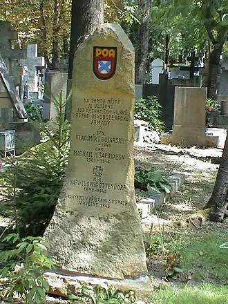 Náhrobek u hromadného hrobu příslušníků ROA na Olšanských hřbitovech v Praze