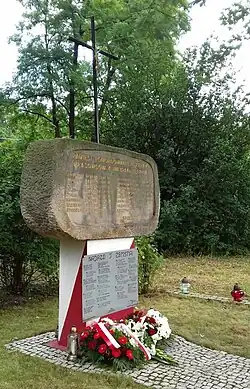 Pomník se jmény 16 obyvatel polské obce Lipno ve věku od 1 do 86 let, zavražděných vlasovci dne 4. srpna 1944