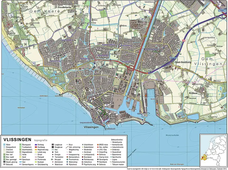 Topografická mapa Vlissingenu, 2010-2011. Pro zvětšení klikněte na její obrázek.