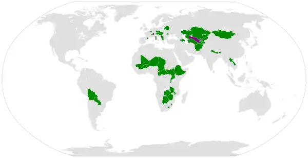 - v Evropě (6 států): Andorra, Bělorusko, Lucembursko, Moldavsko, San Marino, Vatikán