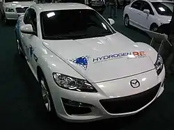 Mazda vodíkový motor vyvíjí od 90 let. Vodík jako palivo používá u upraveného Wankelova motoru v modelu RX-8 Hydrogen RE. U Wankelova motoru nedochází ke zpětnému zášlehu do sacího potrubí oproti běžnému pístovému motoru. V roce 2004 bylo vozidlo schváleno pro provoz na pozemních komunikacích. Od roku 2006 je Mazda začala komerčně pronajímat. Dalším modelem používající vodíkový Wankelův motor je Mazda Premacy Hydrogen RE Hybrid. Toto vozidlo využívá vodíkový rotační motor k výrobě elektrické energie pro elektromotor. Při tomto řešení je dosažena delší dojezdová vzdálenost.[4]