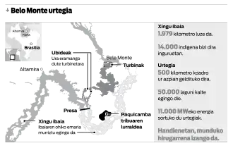 Průtoku největší řeky světa Amazonky lze pro energetické účely využít pouze na jejích pravostranných přítocích, v místech, kde se na peřejnatých úsecích vlévají do Amazonské pánve. I pouhé přítoky Amazonky disponují průtokem s hodnotami samostatných světových veletoků. Jsou to řeky Madeira, Tapajos, Xingú a Tocantins. Řeka Xingú pak opouští zdrojovou náhorní plošinu způsobem, který dal vzniknout projektu unikátního vodního díla pomocí gigantického derivačního systému mezi brazilskými městy Altamira a Belo Monte.