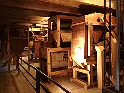 Takto byla do mlýnice uměle vnesena zařízení tzv. českého složení (též obyčejného složení) převezeného na Moravu ze Zábrdí u Prachatic (1874–1877), tzv. kašové složení – kašníku či jahelky – z Drozdovic na Prostějovsku (kolem r. 1940) a dvě francouzská složení umělého mlýna, sestávající ze součástí mlýnů zátopové oblasti vodní nádrže Dalešice z počátku 20. století. Tato zařízení byla instalována na návodní straně mlýnice a každé složení pohání vlastní vodní kolo na spodní dopad vody. Přenos síly z hřídelí vodních kol na mlýnská složení probíhá pomocí dřevěných ozubených soukolí – palečných a cévových kol. Celek uměleckého (či též amerikánského) mlýna tvoří mimo mlecích složení i korečkové výtahy, spádové trubky a hranolové vysévače.