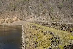 Hráz je sypaná, kamenitá s návodním jílovým těsněním. Koruna hráze se nachází 454,80 m n. m. Její délka je 190 m a šířka 5,5 m. Maximální výška hráze nad terénem je 50,8 m. Výpustná zařízení tvoří spodní výpusti s kapacitou 2 × 10,9 m³/s a bezpečnostní šachtový přeliv se třemi vodárenskými odběry v jeho stěně. Průměr koruny šachtového přelivu je 9,4 m ve výši 451,60 m n. m. a celková kapacita přelivu při maximální hladině v nádrži činí 117,7 m³/s. Nádrž je vybavena ještě odpadní štolou o délce 202 m a kapacitě 56,8 m³/s.