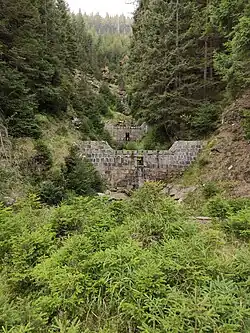 Nad mostem jsou vidět postavené protipovodňové hráze Bystrého potoka a nad nimi horní kaskádovité vodopády. Vodopády nejsou dobře přístupné.[1]