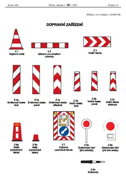 Zrušena byla druhá varianta zábrany pro označení uzavírky (částečná uzavírka). Směrovací deska byla nahrazena třemi novými variantami, nově byly zavedeny (přidány do vyhlášky) vodicí desky, zvýrazňující desky a pojízdná uzavírková tabule, směrové sloupky v bílé a oranžové variantě, dopravní knoflíky, příčný práh a zařízení pro provozní informace. Do vyhlášky byla přidána policejní směrovka.