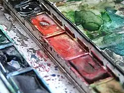 Akvarelové barvy se skládají z rostlinných, nerostných nebo živočišných pigmentů, spojených vodou, arabskou gumou, glycerínem, medem a konzervačními přísadami. Glycerín a med zabraňují popraskání nátěru během jeho vysychání.
