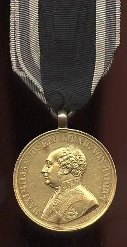 Od roku 1799 se udělovala medaile s vyobrazením nového kurfiřta Maxmiliána IV. Josefa s nápisem MAX. JOS. CHVRF. ZV PFALZBAIERN (Maxmimilian Joseph Kurfürst zu Pfalz-Bayern, Maxmilián Josef kurfiřt pfalc-bavorský). Po povýšení kurfiřtství na království roku 1806 se změnil nápis na přední straně na MAXIMILIAN JOSEPH KOENIG VON BAIERN (Maxmilián Josef král bavorský) a poprsí bylo obráceno (nyní hledělo doleva). Navíc erb na zadní straně byl změněn na královský bavorský.