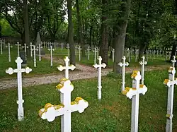 Hřbitov byl od svého založení nekonfesijním pohřebištěm, jeho založení bylo vyvoláno potřebou rychle řešit pohřbívání velkého množství zemřelých. První doložený pohřeb se konal poté, kdy 5. října tři vojáci zemřeli na úplavici a byli pohřbeni do společného hrobu č. 1. Do společných hrobů č. 1 - 7 bylo v rozmezí od října do počátku listopadu 1914 pohřbeno celkem 16 vojáků: "11 zemřelo na úplavici, jeden na zápal plic, jeden pravděpodobně na nějaký zánět, jeden spáchal sebevraždu oběšením a u dvou pak údaje chybí".[2]