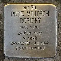 25. září 1946 bylo na památku Vojtěcha Rosického přejmenováno dřívější Žerotínovo náměstí v Žabovřeskách, které bylo během války a krátce po ní označováno jako Alter Platz, čili Staré náměstí.